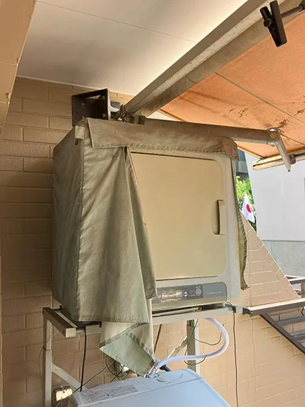 ベランダに設置されている乾太くんの交換工事を行いました。 乾太くんスタンダードは庇のある屋外に設置ができます。 保護カバーをつけて雨、風を防ぎます。 この度はアドテックサービスをご利用いただきありがとうございます。 |