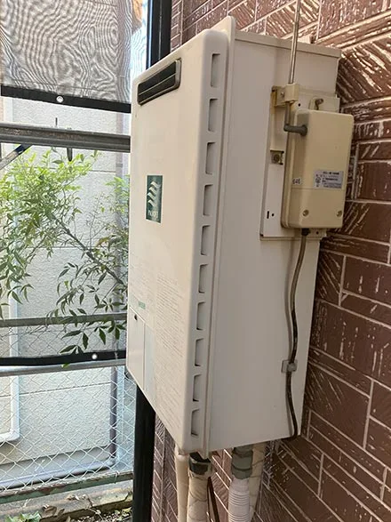 今回、既設の GJ-C24T1 を省エネ性能に優れた RUF-E2406SAW(A)(エコジョーズ・24号・屋外壁掛型) に交換しました。