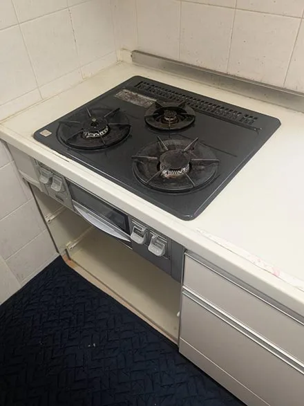 今回は、既設の DG3295NR を、ノーリツ製ビルトインコンロ N3GT2RVQ1(メタルトップ・グレーホーロートップ) に交換させていただきました。