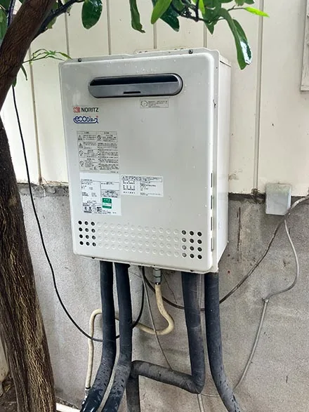 設置状況や既存配管の状態を確認したうえで本体を撤去・新規設置。あわせてリモコン(RC-B001)交換およびガスホースの交換も実施し、安全性と操作性の向上を図っております。