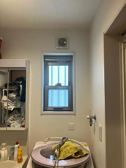 排湿経路はダンパー付排湿管セット(DPS-80KC)と直角エルボ(DE-80A)を用いて適切に施工し、気密性と排湿効率を確保。ガスコードも新規接続し、漏れ確認まで丁寧に行いました。