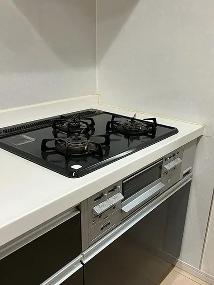 既存コンロを撤去後、設置スペースやガス接続部の状態を確認しながら新しいコンロを設置。接続部の安全確認や本体の固定を丁寧に行い、安心してご使用いただけるよう施工しております。