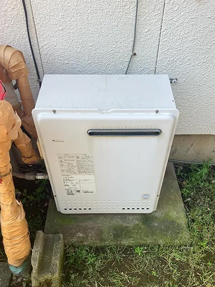 千葉県四街道市四街道にて、既設ふろ給湯器GRQ-1628SAX-2から、屋外据置型20号エコジョーズタイプGT-C2072SAR BLへの交換工事を行いました。