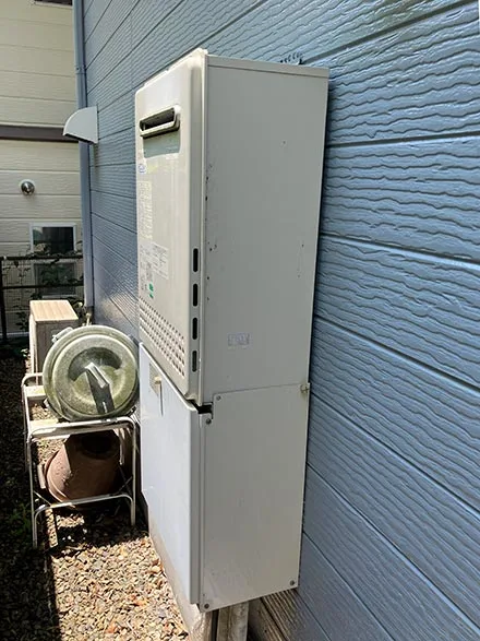 神奈川県川崎市多摩区にて、既設ふろ給湯器GT-C2452AWXから、屋外壁掛型24号フルオートタイプ・エコジョーズ仕様GT-C2472AW BLへの交換工事を行いました。