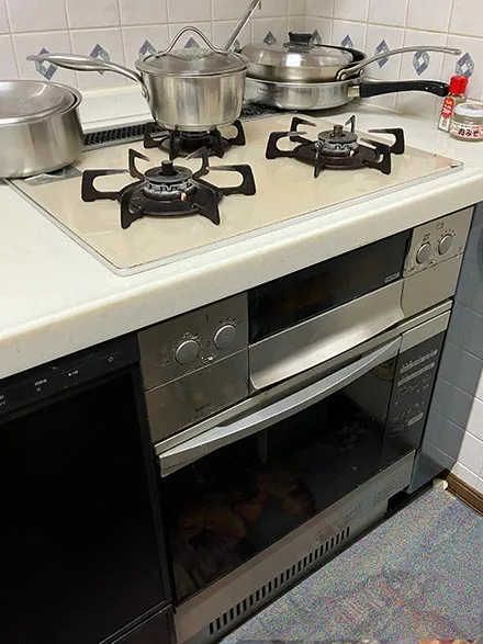 既存の設置状況を確認しながら機器を入れ替え、動作確認を行ったうえでお引き渡ししています。施工は約2時間半で完了しました。横浜市港南区周辺でコンロやオーブンの交換をご検討の際は、お気軽にご相談ください。