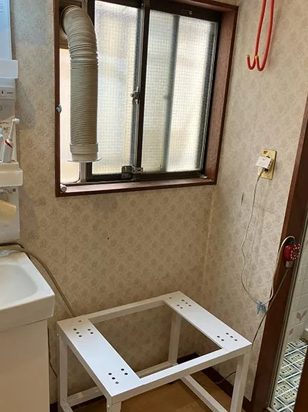 ご使用されていた窓パネルはそのまま利用し、専用台DS-80LSFを使用して設置し、3mのガスコードを接続しました。外干しをせずに乾燥できるため、花粉が気になる時期でも安心して洗濯物を仕上げられます。