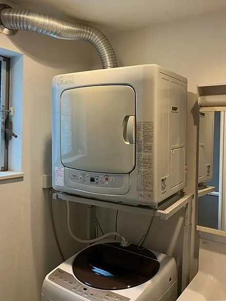 専用台DS-54HSFを使用して設置し、既存環境に合わせて本体を入れ替えました。外干しをせずに乾燥できるため、花粉の付着を気にせず洗濯物を仕上げられる点も特長です。