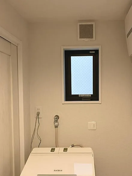 専用台DS-54HSFを使用して本体を安定して設置し、ダンパー付排湿管セットDPS-80KCにより外気の影響を受けにくい排湿経路を確保しました。外干しをせずに乾燥できるため、花粉が気になる時期でも安心して洗濯物を仕上げられる点も特長です。