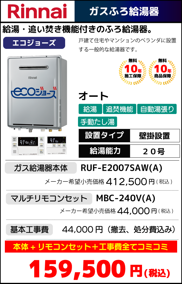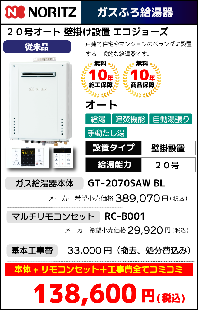 一般的な20号(2~4人のご家族向け)のふろ給湯器が大特価販売中!!【限定10台】