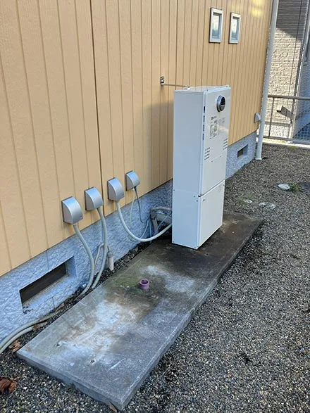 また、見た目などをスッキリする配管カバーや据置台を設置した給湯器など、お客さまにより異なりますので、現在の設置状況や、お客さまのご要望に合わせてオプション品のご案内もさせていただいております。
