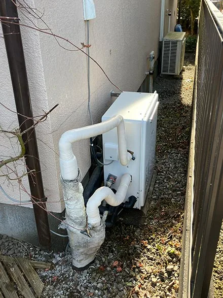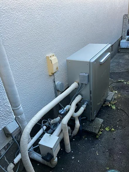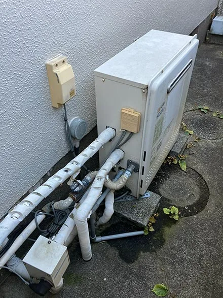 給湯器には多くの配管が接続されております。配管がむき出しで設置されている場合もありますが、配管カバーをすることで見た目もスッキリします。