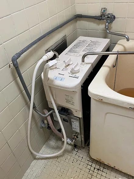 また、見た目などをスッキリする配管カバーや据置台を設置した給湯器など、お客さまにより異なりますので、現在の設置状況や、お客さまのご要望に合わせてオプション品のご案内もさせていただいております。