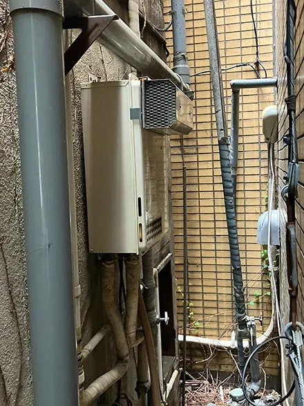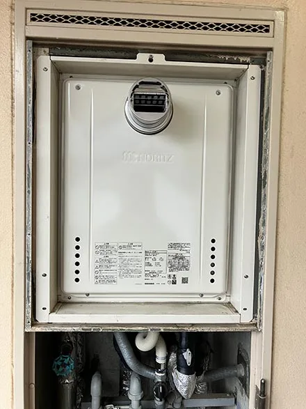 給湯器には多くの配管が接続されております。配管がむき出しで設置されている場合もありますが、配管カバーをすることで見た目もスッキリします。