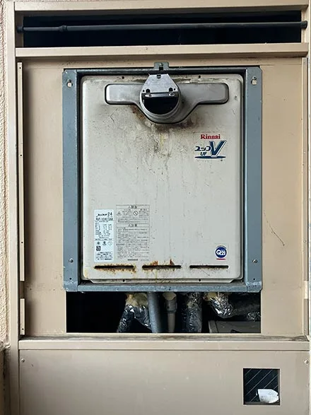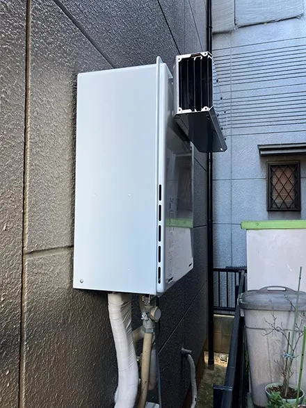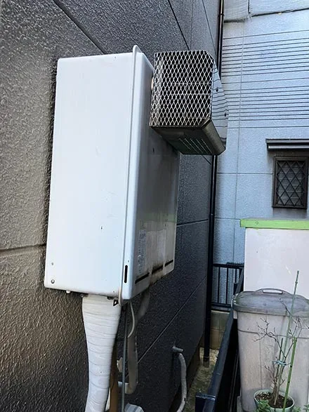 給湯器交換の際は現在ご利用中の給湯器の型番から後継機種をご案内させていただいております。給湯器の設置場所によって、現在ご利用中の給湯器に排気カバーや側方排気アダプタが付いている場合がございます。