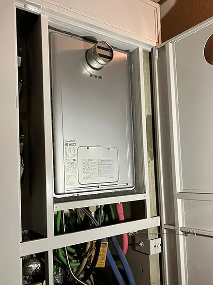 給湯器には多くの配管が接続されております。配管がむき出しで設置されている場合もありますが、配管カバーをすることで見た目もスッキリします。