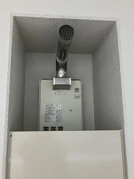 給湯器交換の際は現在ご利用中の給湯器の型番から後継機種をご案内させていただいております。給湯器の設置場所によって、現在ご利用中の給湯器に排気カバーや側方排気アダプタが付いている場合がございます。