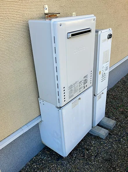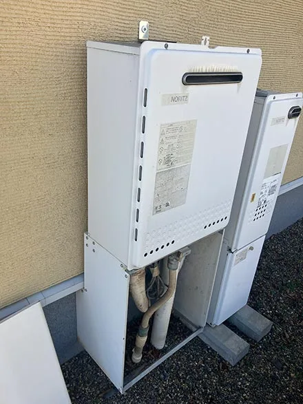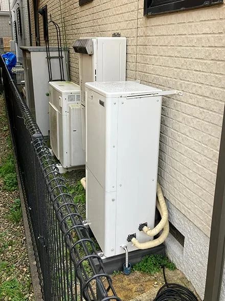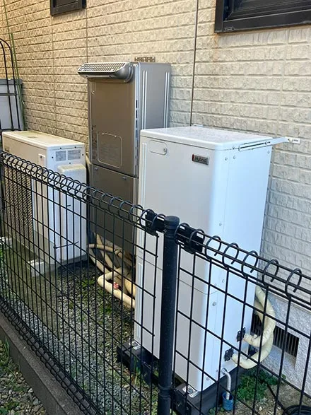 また、見た目などをスッキリする配管カバーや据置台を設置した給湯器など、お客さまにより異なりますので、現在の設置状況や、お客さまのご要望に合わせてオプション品のご案内もさせていただいております。